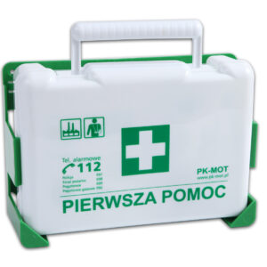 Apteczka pierwszej pomocy wykonana z tworzywa sztucznego (polistyren). W zestawie wieszak do zamocowania na ścianie. Dostępna z wyposażeniem – DIN 13164 ustnik, wyposażenie zgodne z normami UE. Wymiary: 260 mm x 170 mm x 80 mm