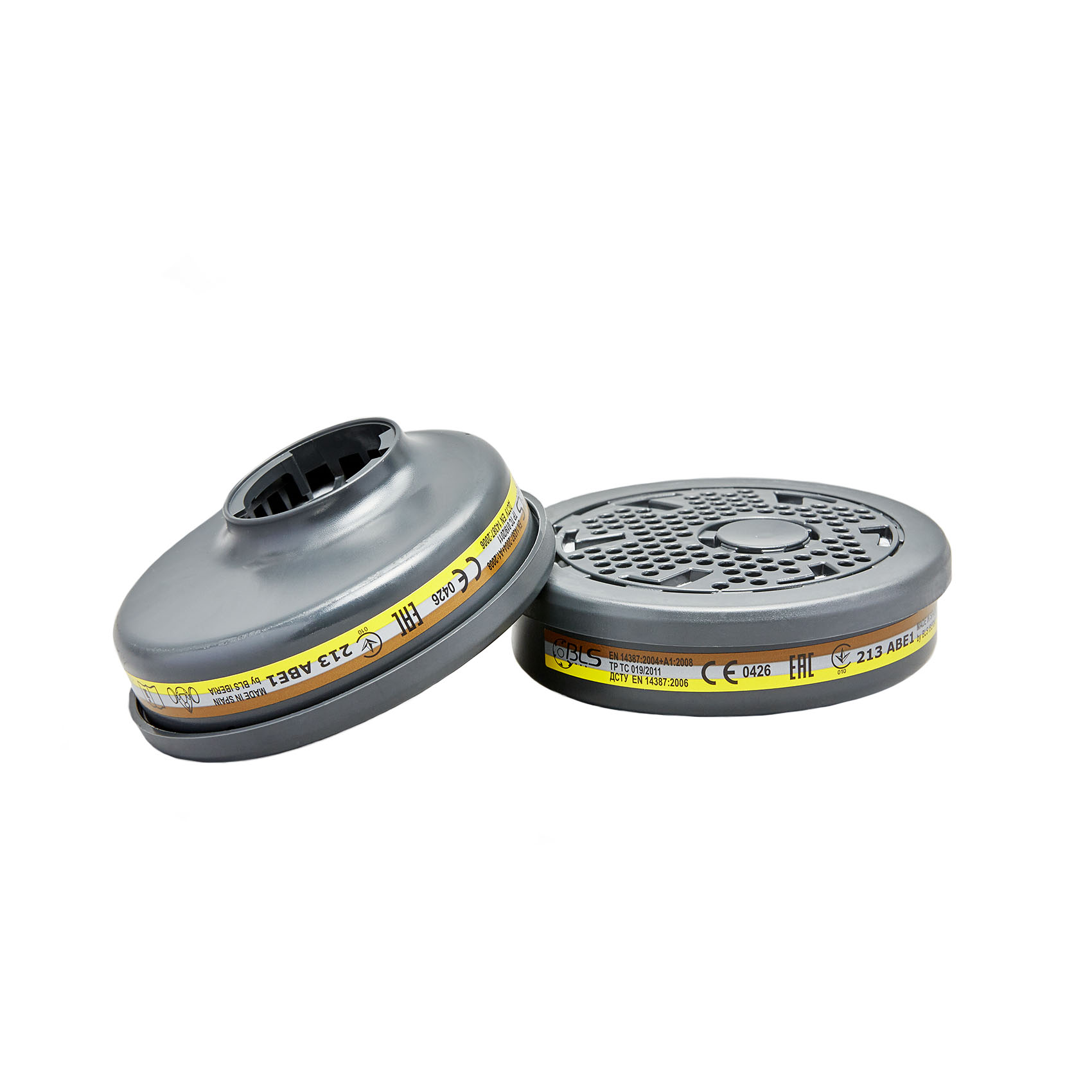 BLS 213 ABE1 Filtry z oznaczeniem ABE1 zapewniają wszechstronną ochronę dróg oddechowych przed wieloma czynnikami szkodliwymi lub niebezpiecznymi: przed gazami i oparami organicznymi (o temperaturze wrzenia powyżej 65 st. C, np. toluen), przed gazami i oparami nieorganicznymi, przed kwaśnymi gazami i parami (chlor, siarkowodór, dwutlenek siarki), Podsumowanie: Seria: 200, Typ: 213 A1B1E1, Klasa ochrony: klasa 1 (ochrona podstawowa, maksymalna ekspozycja: do 1000 ppm), Zastosowanie: gazy i opary organiczne, nieorganiczne, kwaśne, Producent: BLS, Italy, Zgodność z normami: EN 14387, EN 143, Pasuje do masek i półmasek BLS 4000S s/m, BLS 4000 m/l, BLS 5600, BLS 5700. Mocowanie: b-lock (bagnetowe). BLS SERIA 200 FILTRY I FILTRO-POCHŁANIACZE Z PRZYŁĄCZEM BAGNETOWYM „b-lock” Dzięki takim cechom jak wysoka wydajność, łatwość użytkowania i bezpieczeństwo, filtry i filtro-pochłaniacze tej serii skutecznie chronią przed gazami i oparami oraz toksycznymi cząstkami. WĘGIEL AKTYWNY – Jakość węgla aktywowanego używanego przez BLS do produkcji pochłaniaczy i filtro-pochłaniaczy spełnia najwyższe standardy bezpieczeństwa zapewniając doskonałą wydajność filtracji. Produkcja prowadzona jest bez toksycznych dodatków, takich jak sześciowartościowy chrom (Cr VI) i posiada certyfikat jakości spożywczej (REGVE231 / 2017). FILTR PRZECIWPYŁOWY – Skuteczność filtrowania wynosi 99,99%. Integralność materiału filtracyjnego zapewniona jest przez siatkę ochronną. PRZYŁĄCZE BAGNETOWE – To przyłącze w sposób intuicyjny umożliwia szybki i bezpieczny montaż elementów filtrujących do maski lub półmaski. Wyraźny opór końcowy zamka informuje użytkownika o prawidłowym zamocowaniu osprzętu. TESTOWANO NA FORMALDEHYD – Testy pokazują, że specjalne węgle używane przez BLS w pochłaniaczach ABEK i ABE są w stanie zagwarantować ochronę przed formaldehydem. Nawet przy pochłaniaczach klasy 1 można uzyskać odpowiednią ochronę. Pod koniec testu wykryte stężenie formaldehydu na końcu pochłaniacza jest niższe niż połowa wartości progowej limitu zgodnie z NIOSH TEB-APR-STP-0039A (Punkt graniczny). PUSZKA POCHŁANIACZA – Wykonana z nieodkształcalnego ABS pozwala uzyskać absolutną kontrolę nad kompresją ziaren aktywnego węgla. Dzięki temu całkowicie unika się możliwości powstawania korytarzy powietrznych powodując, że pochłaniacz jest w 100% bezpieczny.
