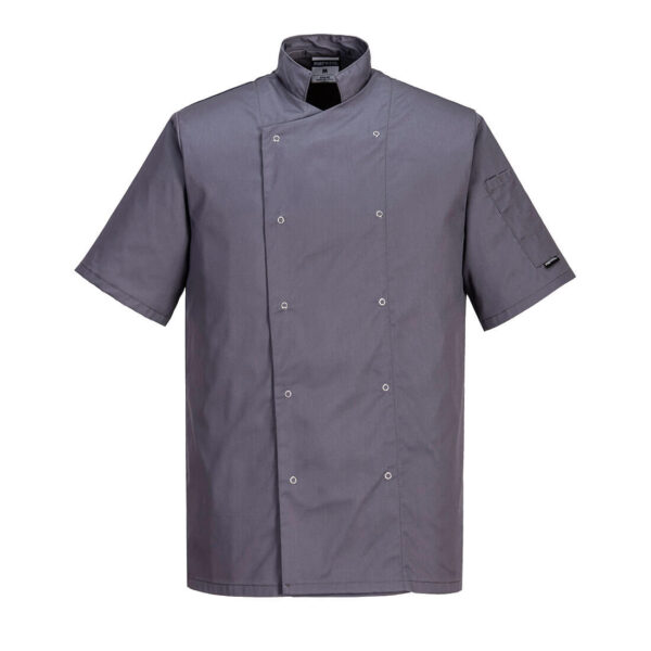 Nowoczesna bluza kucharska ze stójką wykonana z lekkiej i trwałej tkaniny o bardzo dobrych parametrach. Zapewnia dobry wygląd nawet w czasie długotrwałej pracy i po wielu praniach. Zapinana na napy. Posiada kieszeń na długopis na rękawie.