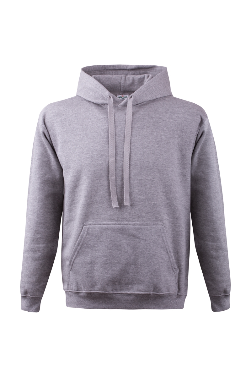 Uniwersalna bluza typu „kangurek” z dużą, charakterystyczną kieszenią z przodu, odpowiednia dla kobiet i mężczyzn. Brak szwów bocznych, podwójnie podszyte ściągacze przy rękawach oraz w dolnej części bluzy. Skład: 50% bawełna, 50% poliester o gramaturze 280g/m2.