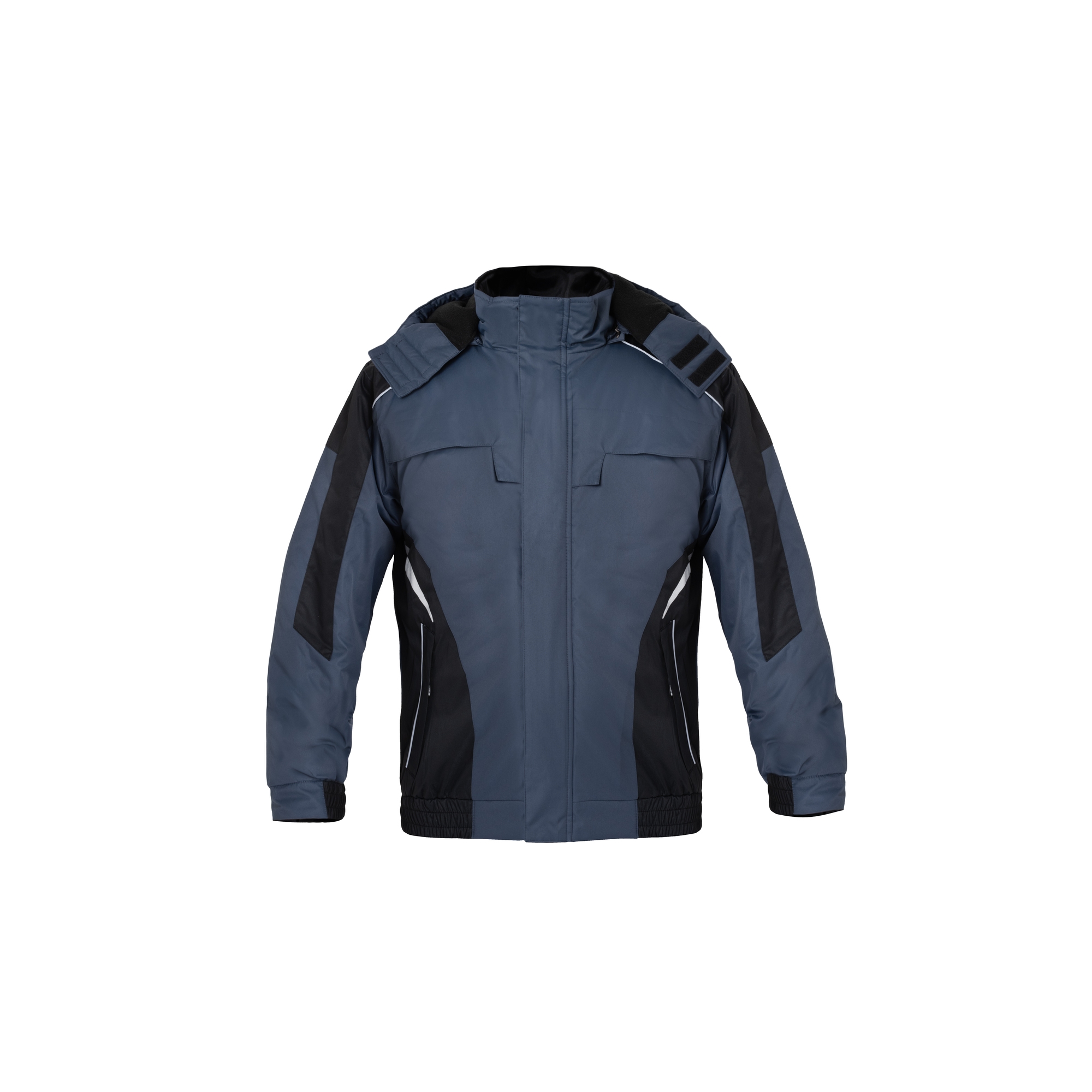 Kurtka wykonana w 100% z trwałego poliestru, ocieplana od wewnątrz polarem, zasuwana na zamek błyskawiczny osłonięty zapinaną listwą na rzepy. Posiada dwie kieszenie dolne zapinane na zamek błyskawiczny i osłonięte klapami, a także małą kieszeń od strony wewnętrznej zapinaną na rzep. Rękawy ze ściągaczami zwiększają komfort jednocześnie poprawiając izolację termiczną. Odsuwany kaptur ocieplany polarem, ściągany za pomocą troczków, posiada dodatkowe zapięcie na rzep dzięki czemu głowa jest lepiej chroniona przed zimnem i warunkami atmosferycznymi. Dół kurtki zakończony ściągaczem. Rozmiary: S – XXXL. Pakowanie: 1/10 karton.