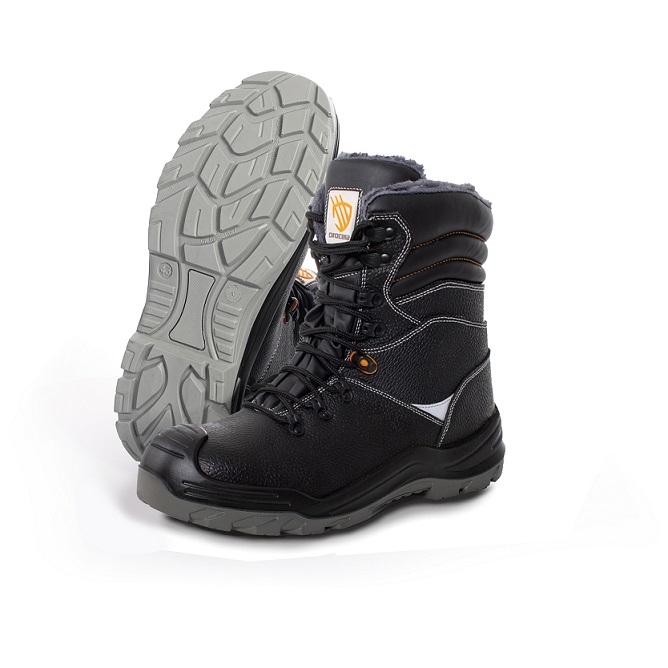 Buty bezpieczne ocieplane kożuchem NARVIK S3. Wykonane z bydlęcej skóry dwoinowej, z wyściółką ocieplającą, metalowym podnoskiem ochronnym odpornym na uderzenia z energią 200 J i zgniecenia 15kN oraz stalową wkładką zabezpieczająca stopę przed przekłuciem o nacisku 1100N. Podeszwa z dwugęstościowego poliuretanu PU/PU, antyelektrostatyczna, antypoślizgowa i olejoodporna. Absorpcja energii w części piętowej. Elementy odblaskowe na bokach. Kategoria S3 SRC. Spełnia wymagania normy EN 20345. Dostępne w rozmiarach: 39 – 47.