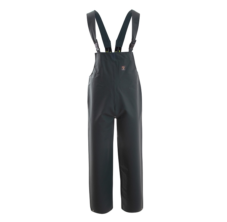 Spodnie ogrodniczki wodoochronne wykonane z tkaniny Probaltic (dzianina poliestrowa powlekana polichlorkiem winylu), o masie powierzchniowej 350 g/m2 – odpornej na zginanie w niskich temperaturach (do – 50 st C). Spodnie proste wykonane z bawetem prostym, przednim. Do bawetu tylnego przyszyto szelki zapinane z przodu na klamry plastikowe. Szelki wykonane z odcinkiem taśmy gumowej. Szwy zgrzewane prądem wysokiej częstotliwości. Spełnia wymagania normy EN 13688, EN 343.