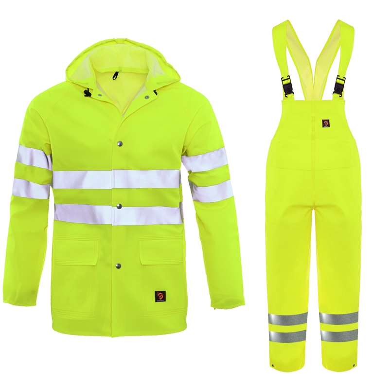 Ubranie wykonane z tkaniny Probaltic Fluo (dzianina poliestrowa powlekana polichlorkiem winylu), o gramaturze 350 g/m2, – odpornej na zginanie w niskich temperaturach (do –50 C). Taśmy odblaskowe termotransferowe 3M art. 8712. W skład ubrania ostrzegawczego wodoochronnego PROBALTIC FLUO wchodzą: Kurtka o długości ¾ (poniżej bioder) zapinana na metalowe, nierdzewne napy. Przód i tył kurtki wykonany z jednego fragmentu materiału – bez szwów bocznych. Tył kurtki z karczkiem, przykrywającym otwory wentylacyjne. Rękawy jednoczęściowe reglanowe z doszytymi wiatrołapami. Kurtka posiada dwie kieszenie dolne przykryte patkami. Kaptur prosty, ściągany sznurkiem ze stoperem w celu regulacji owalu twarzy. Na całym obwodzie kurtki i rękawów naniesione po 2 pasy odblaskowe. Szwy zgrzane prądem wysokiej częstotliwości. Spodnie ogrodniczki z szelkami wykonanymi z taśmy gumowej, z przodu dopięte klamrami z płynną regulacją długości do karczka przedniego. Obwód pasa regulowany, dół nogawek wykończony obrębem z regulacją obwodu za pomocą nap. Podwójne taśmy odblaskowe na nogawkach poniżej kolan. Szwy zgrzane prądem wysokiej częstotliwości. Spełnia wymagania normy EN 13688, EN 343, materiał oraz taśmy odblaskowe spełniają wymagania normy EN 20471.