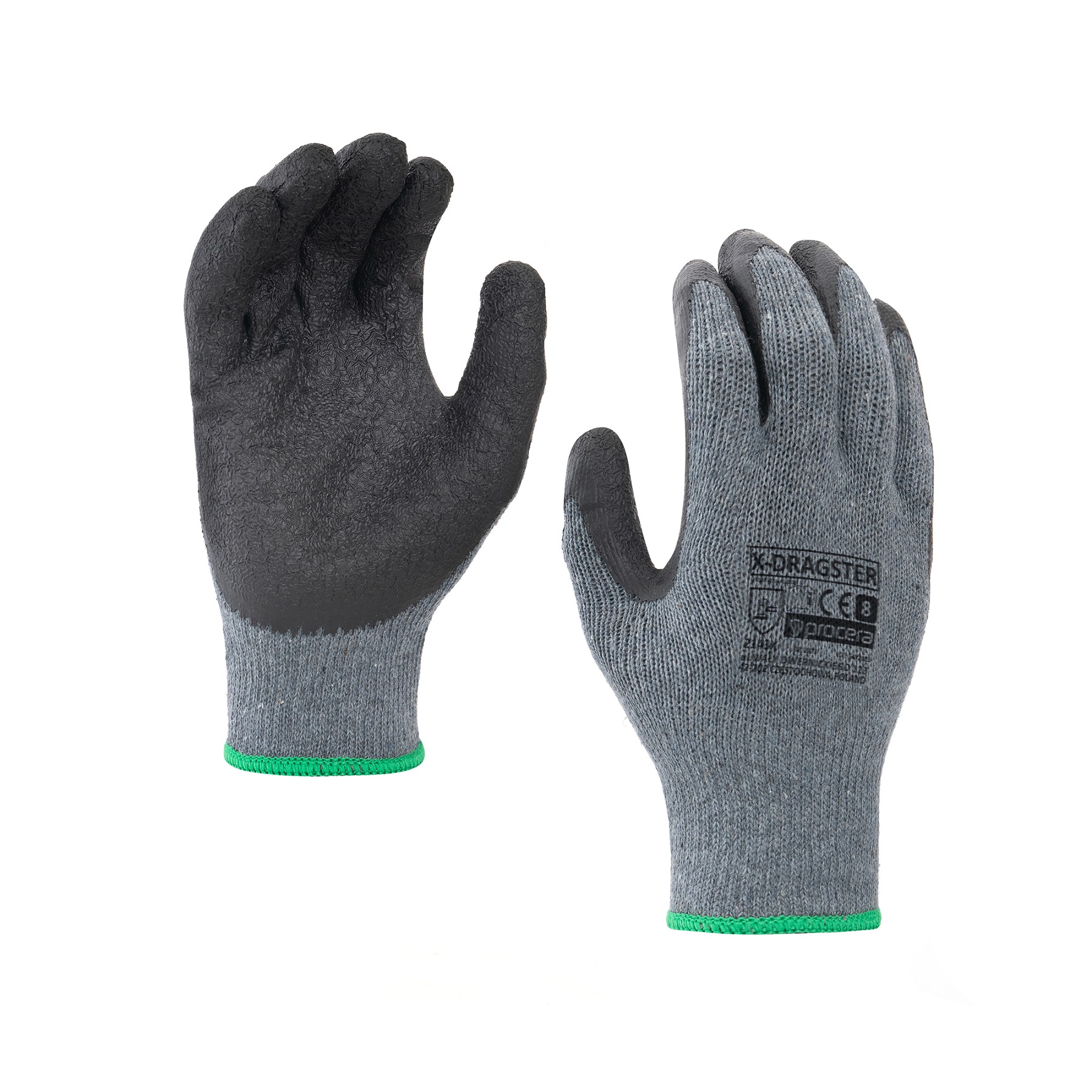 X-DRAGSTER PROMOCJA – CENA DOTYCZY ZAKUPU 2 KARTONÓW CZYLI WIELOKROTNOŚCI 240 PAR RĘKAWIC. Rękawice X-DRAGSTER wykonane z dziany poliestrowo bawełnianej w kolorze szarym, powlekanej w części chwytnej lateksem o szorstkowanej strukturze. Bardzo dobra przyczepność. Zakończone ściągaczem. CE EN 388. Opakowanie: karton 12/120. Kolor: szary/czarny.