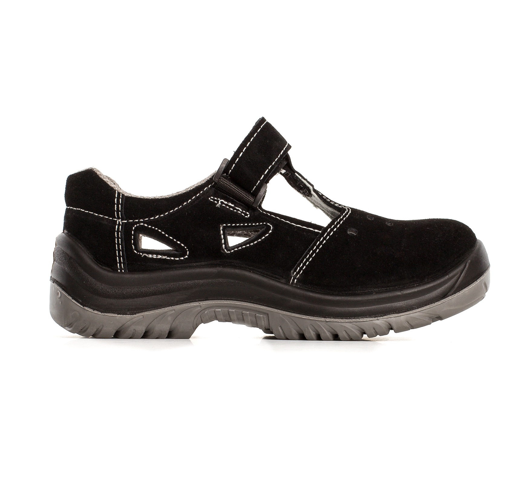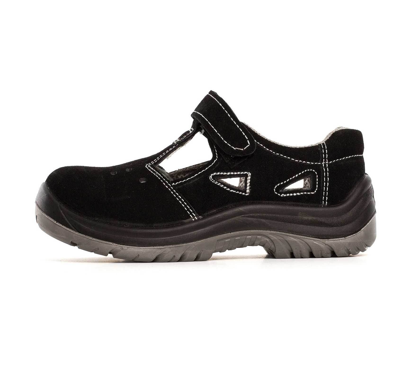 Sandały bezpieczne KAMARI z metalowym podnoskiem ochronnym. Cholewka obuwia wykonana jest ze skóry welurowej, zapięcie na rzep. Podeszwa z dwuwarstwowego poliuretanu PU/PU, antyelektrostatyczna. Warstwa zewnętrzna twardsza, wewnętrzna bardziej miękka. Absorpcja energii w części piętowej. Podeszwa antypoślizgowa. Wyściółka z materiałów o właściwościach higroskopijnych. Głęboki protektor zapewniają wysoką stabilność obuwia i komfort chodzenia. Kategoria S1.