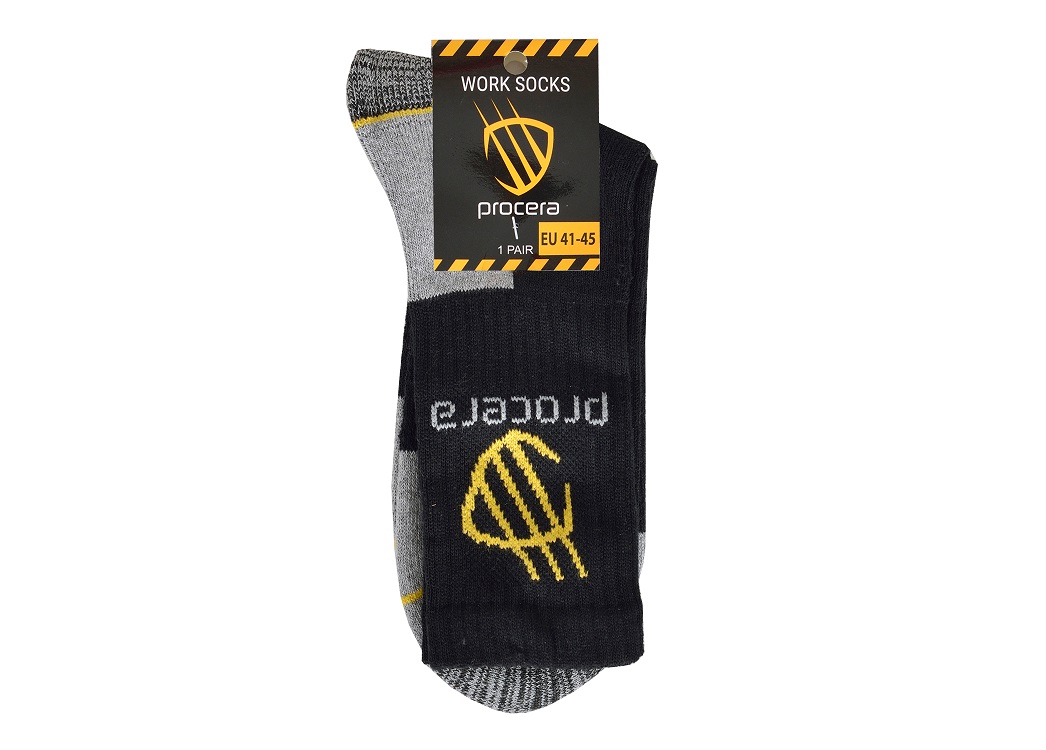 Wysokiej jakości skarpety robocze doskonale sprawdzające się nawet w ciężkich warunkach. Wykonane z: 65% bawełna 25% poliester 7% akryl 3% elastan, dostępne w rozmiarze uniwersalnym 41-45. Warstwa frottowa chroni przed przetarciami. Posiadają nieuciskający ściągacz oraz wzmocnione pięty oraz palce. Płaski szew. Zapewniają wysoki komfort użytkowania, idealnie dopasowują się do stopy, dobrze odprowadzają wilgoć. Wysoka odporność na ścieranie. Pakowane po 1 parze.