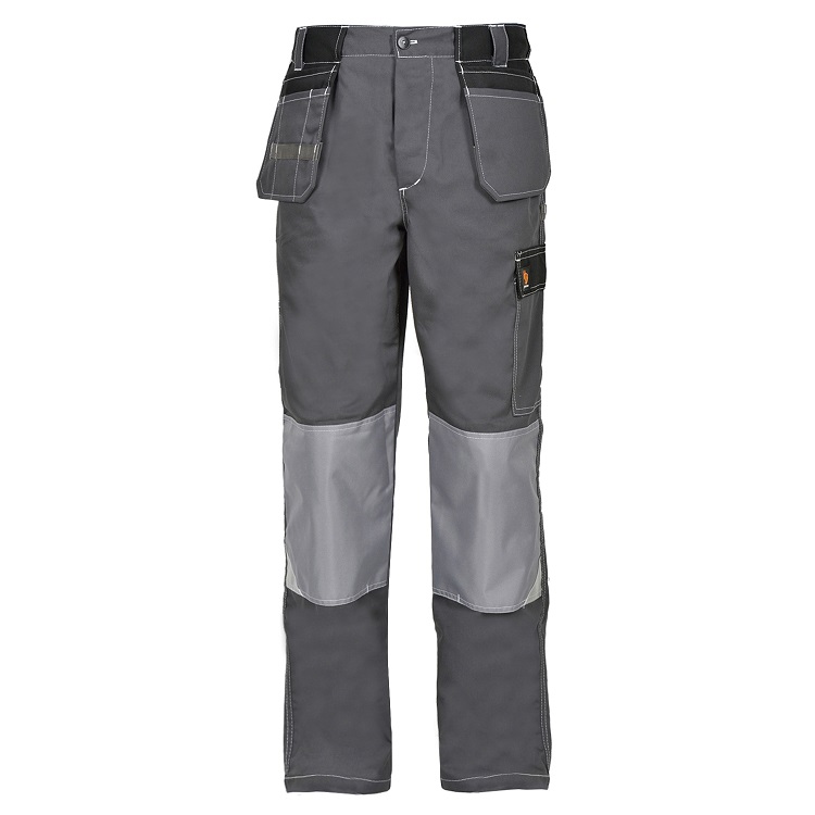 Spodnie do pasa PROMONTER. Spodnie wykonane z wytrzymałej na rozdzieranie i tarcie tkaniny typu Twill o składzie 65% poliester i 35% bawełna, o gramaturze 260g/m2. Na kolanach wzmocnienia z materiału typu OXFORD zabezpieczającego przed przetarciem. Możliwość zastosowania wkładek nakolannikowych. Dodatkowe elementy odblaskowe. Duża liczba funkcjonalnych kieszeni w tym dwie zwiększające swobodę ruchów podwójne wiszące kieszenie monterskie z podziałkami i dodatkowymi elementami do zamocowania akcesoriów lub narzędzi, kieszeń na calówkę, kieszeń typu bojówka, dwie kieszenie tylne i dwie kieszenie boczne. Gumy dopasowujące w tylnej części pasa. Dodatkowe wzmocnienia, rygle i podwójne szwy zwiększające wytrzymałość. Wyprodukowano w Polsce zgodnie z ISO 9001. Rozmiary od 48-62. (UE) 2016/425