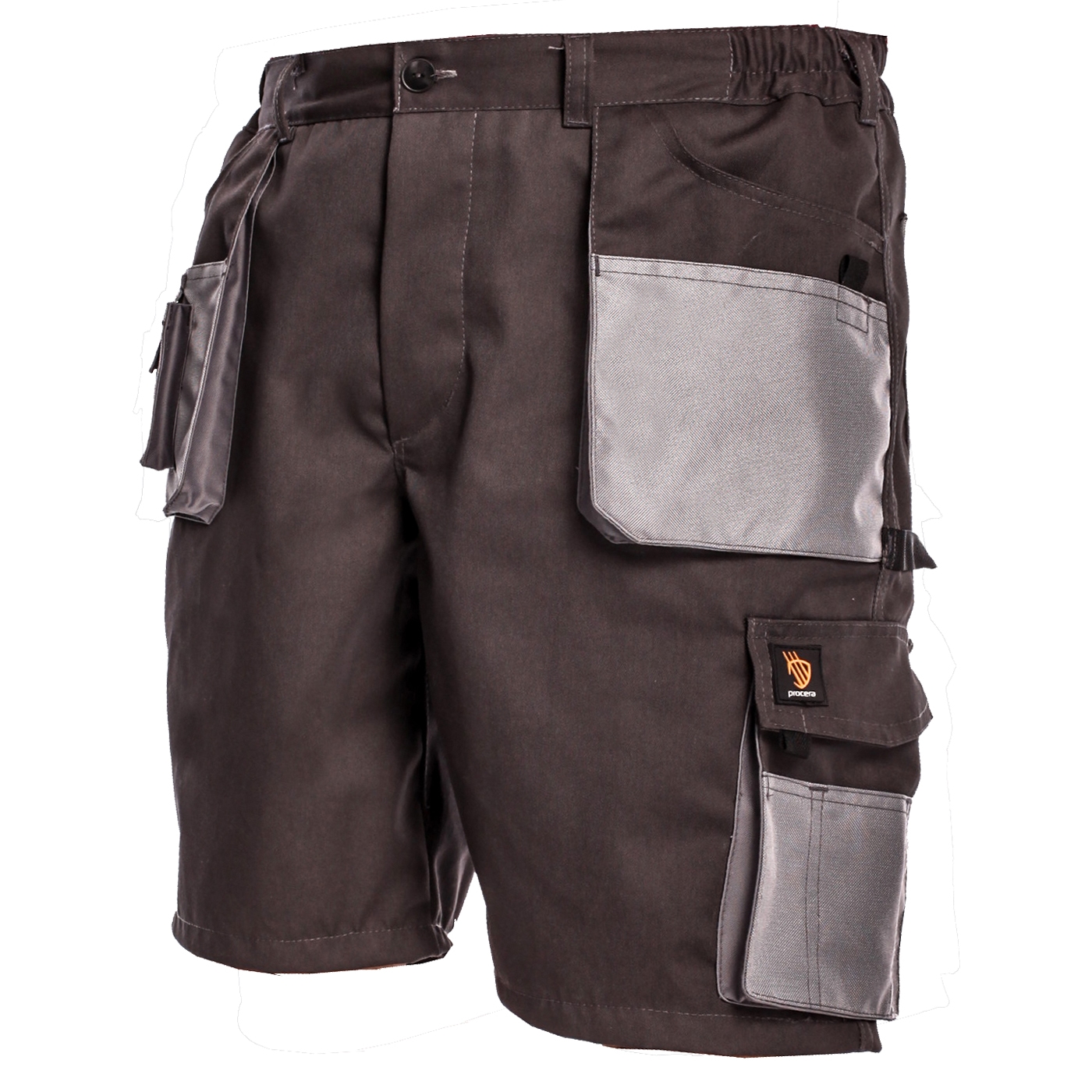 Spodnie krótkie PROMAN 290. Spodnie wykonane z wytrzymałej na rozdzieranie i tarcie tkaniny typu Twill o składzie 65% z poliester i 35% bawełna, o gramaturze 290g/m2. 10 funkcjonalnych kieszeni w tym podwójne kieszenie przednie z dodatkową kieszenią na smartfon, kieszeń na calówkę, dwie kieszenie tylne i kieszeń typu bojówka z dodatkową dzieloną kieszenią na narzędzia. Zaczep taśmowy do mocowania akcesoriów lub narzędzi. Na kieszeniach wzmocnienia z materiału typu OXFORD zabezpieczające przed przetarciami. Gumy dopasowujące w bocznych częściach pasa. Dodatkowe wzmocnienia, rygle i podwójne szwy zwiększające wytrzymałość. Wyprodukowano w Polsce zgodnie z ISO 9001. Rozmiary od 46-62. (UE) 2016/425