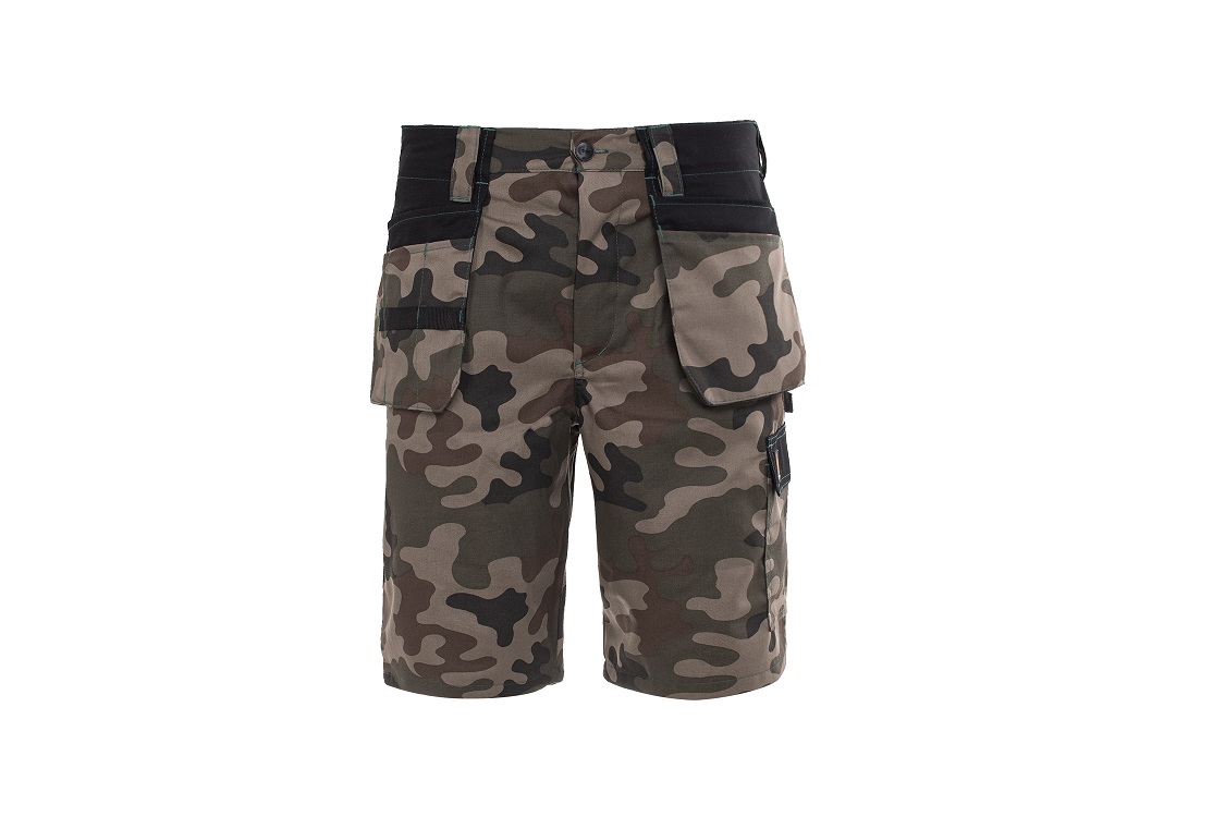 Spodnie monterskie krótkie PROMONTER 260. Spodnie wykonane z wytrzymałej na rozdzieranie i tarcie tkaniny typu Twill o składzie 65% z poliester i 35% bawełna, o gramaturze 260g/m2. 8 funkcjonalnych kieszeni w tym dwie kieszenie wiszące z dodatkowymi przegródkami, dwie kieszenie tylne, kieszeń na calówkę, kieszeń typu bojówka. Gumy dopasowujące w bocznych częściach pasa. Dodatkowe wzmocnienia, rygle i podwójne szwy zwiększające wytrzymałość. Wyprodukowano w Polsce zgodnie z ISO 9001.